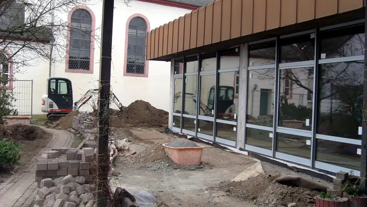 Immer wieder sieht man Eimer und Schüsseln in den Räumen des Gemeindehauses dort aufgereiht stehen, wo auf dem Dach die Abflussrinne verläuft. …