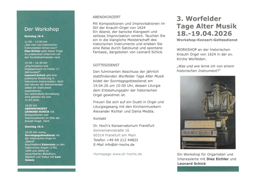 Orgelflyer 3te Worfelder Tage Alter Musik - Info PDF